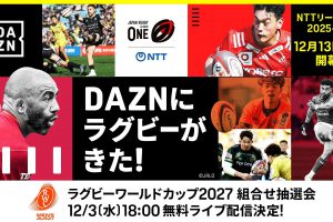 DAZN ダゾーン 12/3 18:00〜ラグビーワールドカップ2027 組合せ抽選会 無料ライブ配信! NTTジャパンラグビー リーグワン2025-26 D1.2.3 全試合 登録不要 無料ライブ配信!