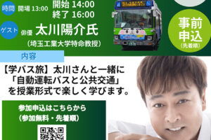 2/19 埼玉県深谷市で「深谷バスサミット」開催 太川陽介 特命教授が登壇☆ 深谷市を走る自動運転AIバスと公共交通の今後について特別授業 参加者募集中!