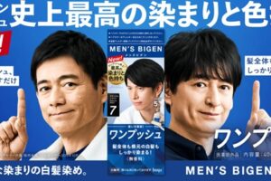 「白髪って、自分染めでも自然になるんよねーっ」(博多華丸) 「馴染みますねーっ」(博多大吉) 「根元の白髪もしっかり染まる! メンズビゲン ワンプッシュ史上 最高の染まりと色持ち」 ―――もうこのテレビCM、観た? これ…