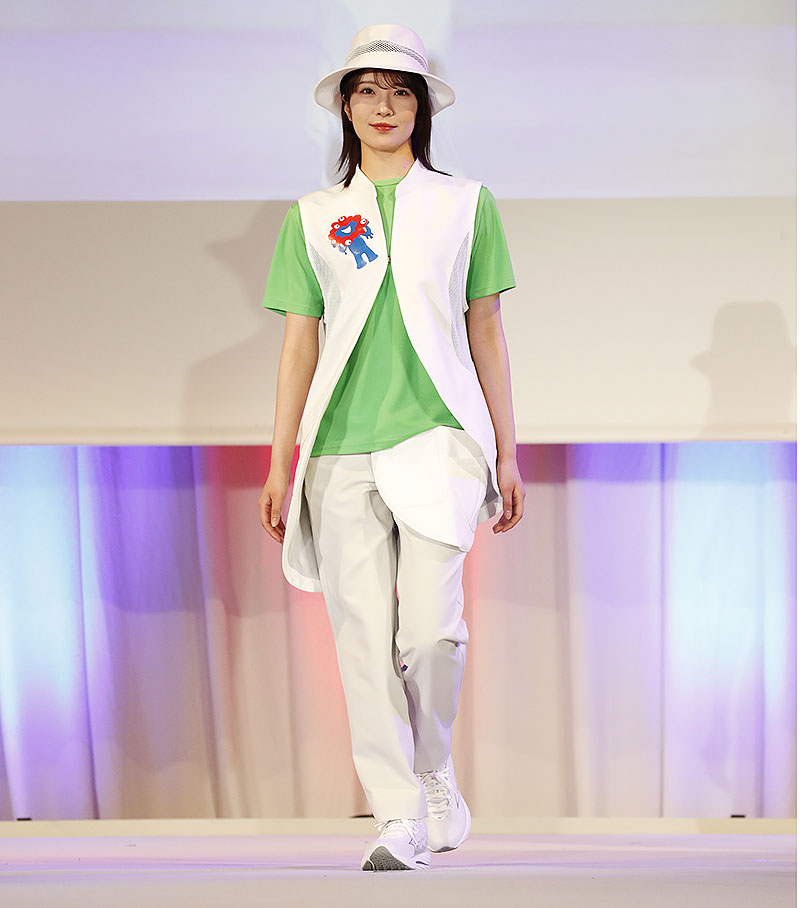 そして最後は、2025年日本国際博覧会スペシャルサポーター 青木崇高、小嶋花梨(NMB48)、塩月希依音(NMB48)、坂田心咲(NMB48)らが登壇し、ユニフォームを披露しながらランウェイ。
