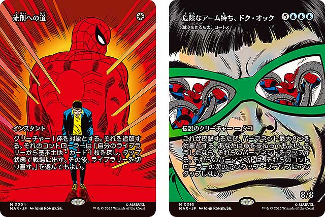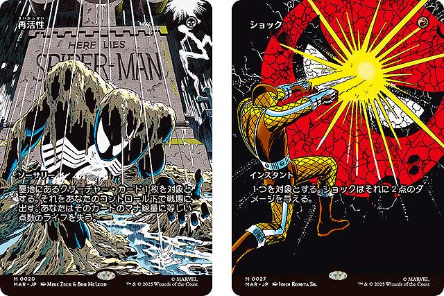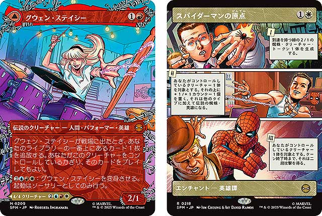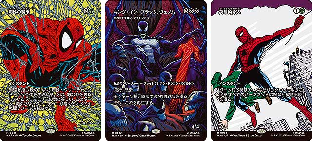 「マジック:ザ・ギャザリング | マーベル スパイダーマン」セットでは、糸の模様をあしらった「ウェブスリンガー」ボーダーレス版や、コミックを模した「パネル」ボーダーレス版などが登場。