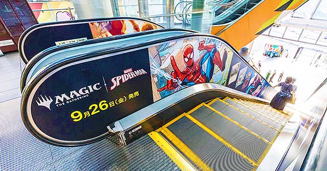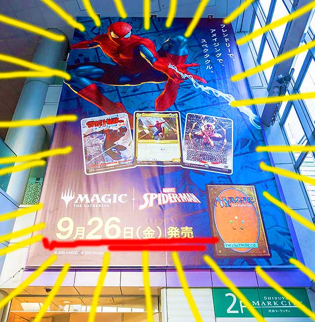そして、この『マジック:ザ・ギャザリング | マーベル スパイダーマン』の世界観を体感できる巨大ビジュアルが、渋谷マークシティに 9/28 まで出現中!
