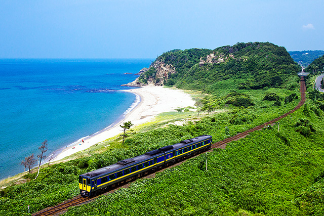 ここは島根県。日本海の大海原を車窓に映しながら、海沿いの絶景のなかをひた走る、山陰線特急「スーパーまつかぜ」キハ187系。