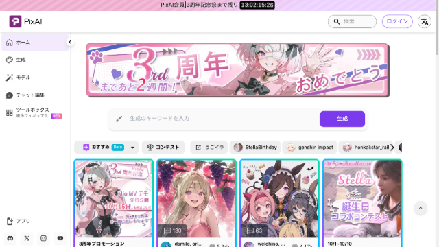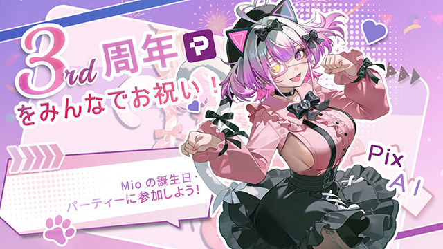 PixAI の象徴、看板娘Mio(ミオ)が PixAI 3周年ってことで、イメージリニューアル。