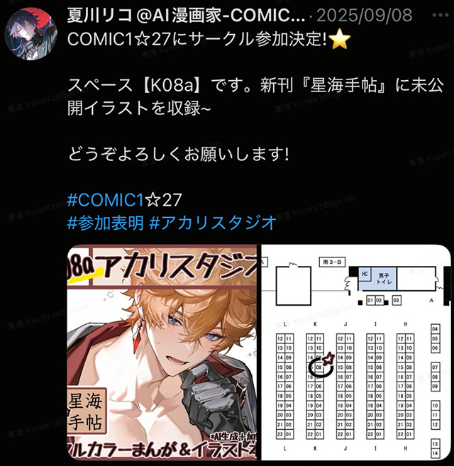 その第一弾として、AI漫画家・夏川リコのオリジナル同人誌即売会「Comic1(コミックワン)」出展を支援。