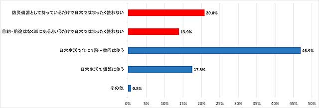 このことから、防災品として備蓄するだけでなく、実際の使い方や役立て方を含めて防災準備しておくことが重要といえる。