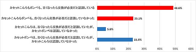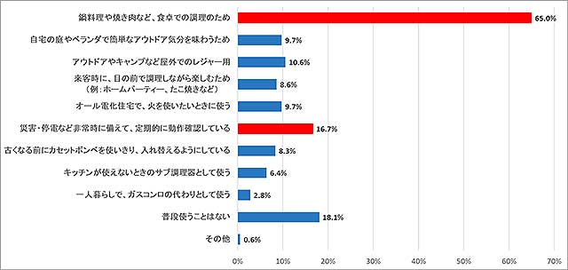 この結果には、防災意識の高まりを受けてカセットこんろやボンベを備蓄する家庭が増えるいっぽうで、購入したことで安心し、実際の使い方や活用準備まで進んでいないケースが多いことが考えられる。