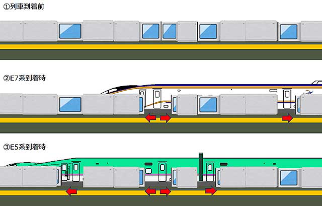 この異なる車両形式の乗降ドア位置にあわせて、駅に到着した編成の種類を判別し、自動で車両ドアの位置に応じたホームドアを開扉する機能を導入。