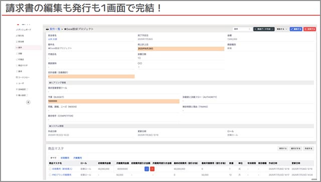 画面遷移を最小化できるのもポイント。請求書の編集も発行も1画面で完結する。
