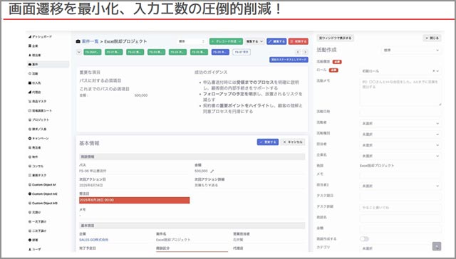 GoCoo! は、日本の営業マンが慣れ親しんだ入力画面を再現し、見たまま編集でかんたんに操作できる。
