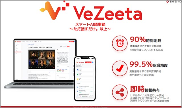スマートAI議事録「VeZeeta(ベジータ)」は、会議内容の自動録音、録画、文字起こし、要約までをリアルタイムに自動で可視化・分析してくれるツール。