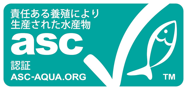 ASC認証ラベルは、同じく国際的非営利団体「ASC」(Aquaculture Stewardship Council:水産養殖管理協議会)は、環境と社会への影響を最小限に抑えた方法で養殖の基準をクリアした商品につくラベル。