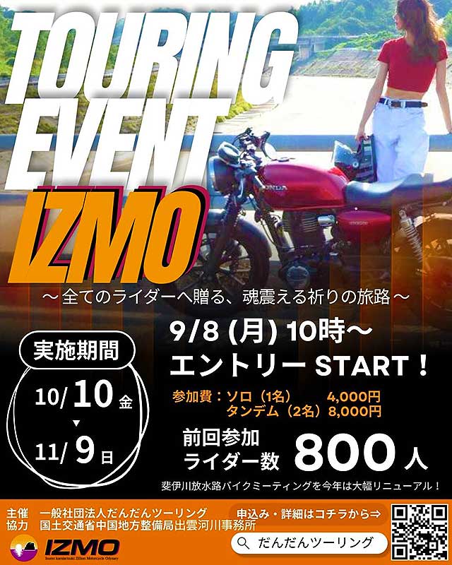 ―――そんな想いを込めて、島根県 出雲・松江で開かれるバイクツーリングラリーイベントが、10/10~11/9 開催中「IZMO」。