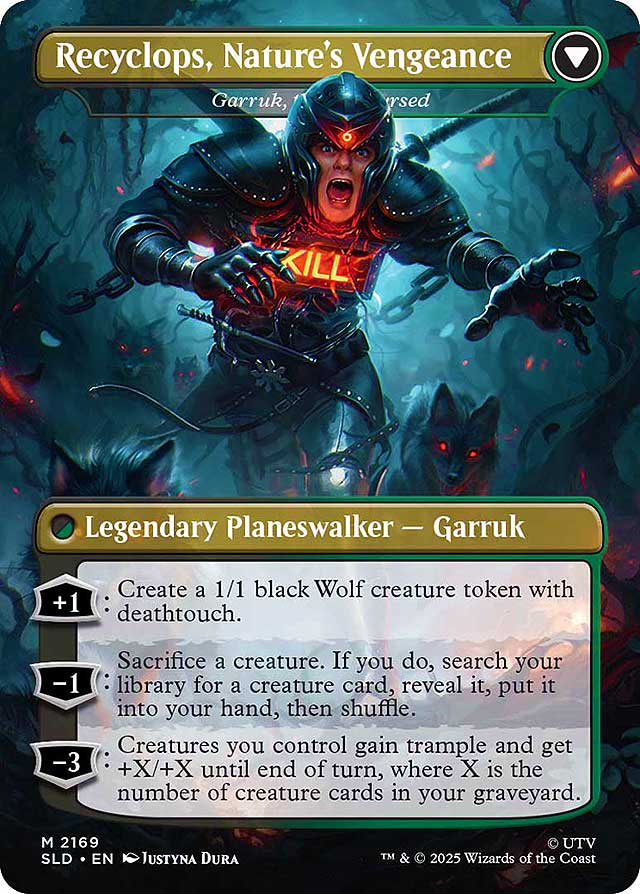 1x Garruk Relentless // Garruk, the Veil-Cursed as “Recyclops, Eco-friendly // Recyclops, Nature’s Vengeance”