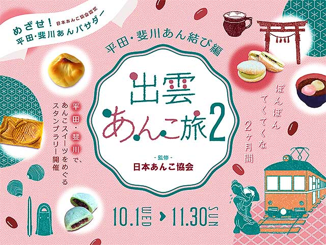 島根県「出雲あんこ旅2 ~平田・斐川あん結び編~」11/30まで開催中 しまねあんこスイーツ16種を巡るスタンプラリーへ 美人の湯とあんこお菓子でココロもからだも整えて◎