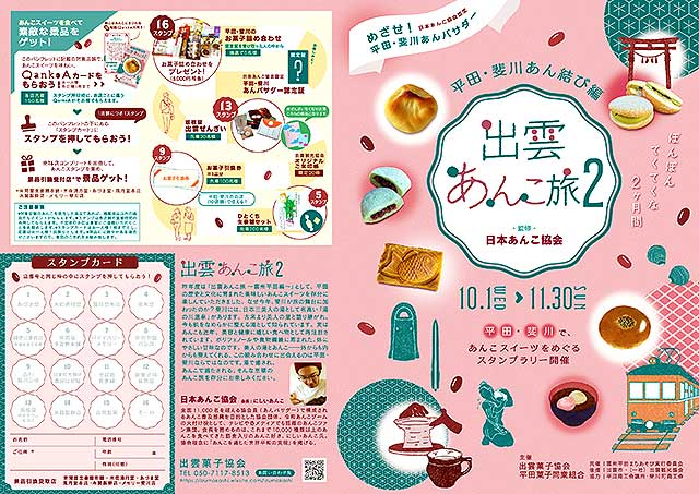 この「出雲あんこ旅」は、島根県出雲市内の和菓子店や洋菓子店、甘味処、製パン店、飲食店などのあんこスイーツを巡るスタンプラリーイベント。