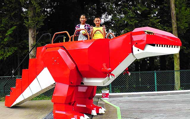 しかも自分で操縦でき移動しながら口を開けて鳴いたりもできるから、みんなで乗って記念撮影して、最高の思い出に♪