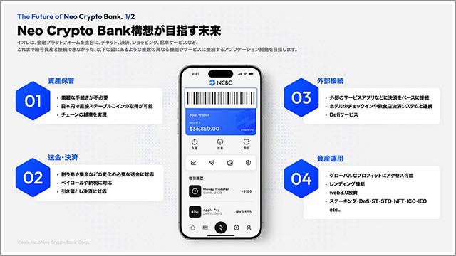 この発表から1週間後のきょう暗号資産金融事業戦略発表で、イオレがビジョンを描く「Neo Crypto Bank 構想」のなかの具体的なアプローチのひとつを公表。