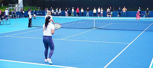 YONEX契約選手によるエキシビションマッチや、キッズ、ジュニア対象のテニス レッスン、サービススピードコンテストなどを実施。