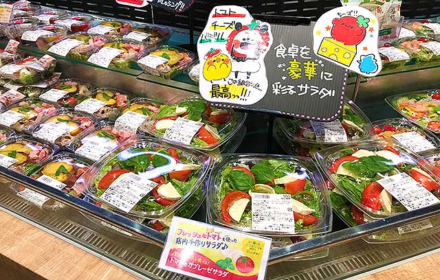 毎日店内で手作りするサラダコーナーの野菜は、バックヤードにある野菜専用のこだわりの冷蔵庫で4~6度・湿度85%に保たれているからシャッキシャキ。