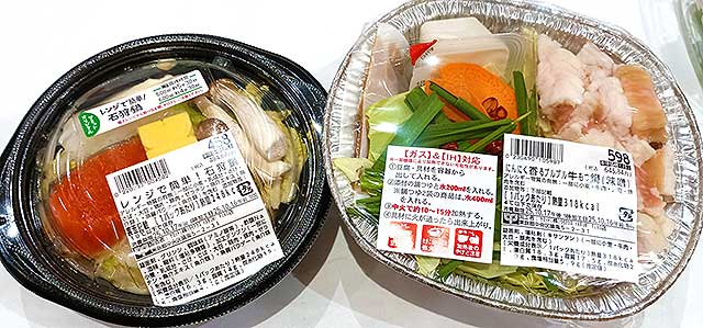 たとえば火にかけるだけでアツアツのお鍋ができる“鍋パッケージモノ”もおすすめ。