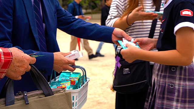 さらに、学習塾「全教研」の生徒たちにも森永ラムネをプレゼント。