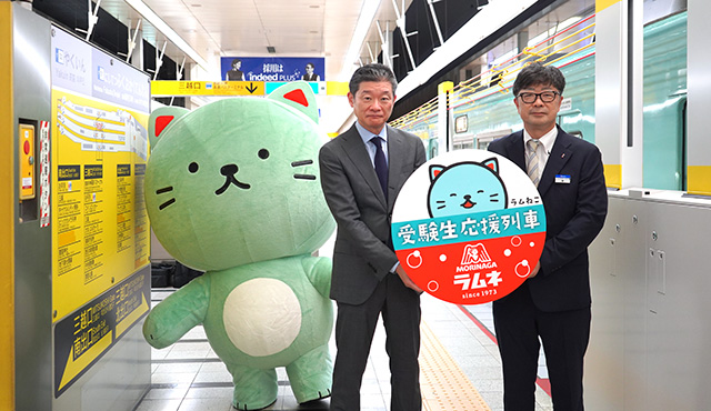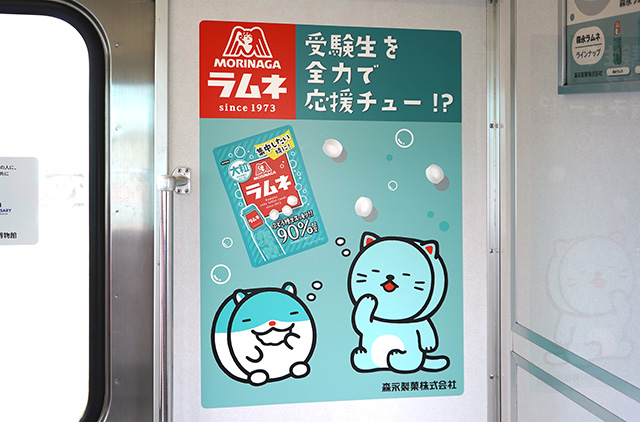 森永ラムネ ラムねこ×西鉄電車=受験生応援列車 運行中! 太宰府天満宮へ森永ラムネ奉納 受験生たちにも贈ってエール「気分リフレッシュ、ラムネパワーで志望校に合格!」