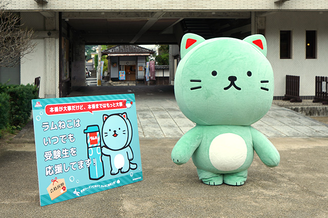 ―――そんな受験生に愛される「森永ラムネ」ってことで、「学問・文化芸術の神様」太宰府天満宮へみんなの合格を祈願すべく、ラムねこが森永ラムネを奉納。