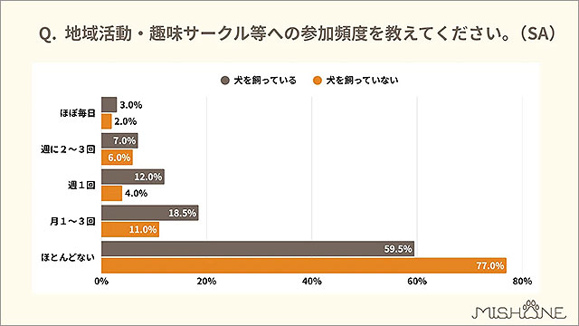 いっぽう犬を飼っている人が、頻度が高くなくても参加している比率が高い結果に。
