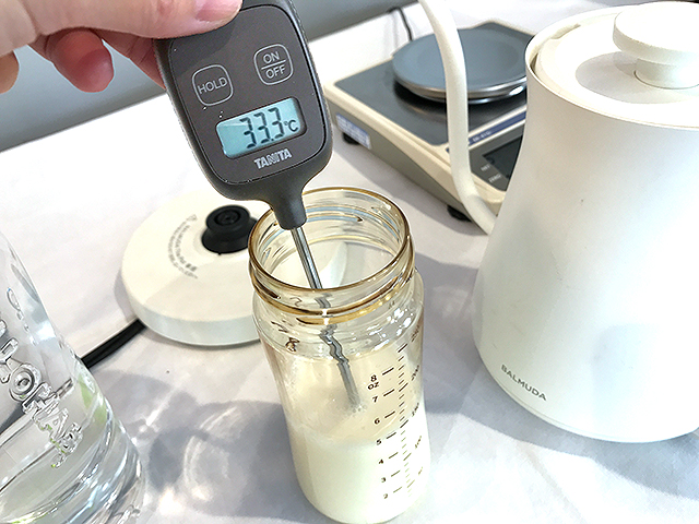 画像は手動でミルクをつくってる途中で、温度調整に苦戦。