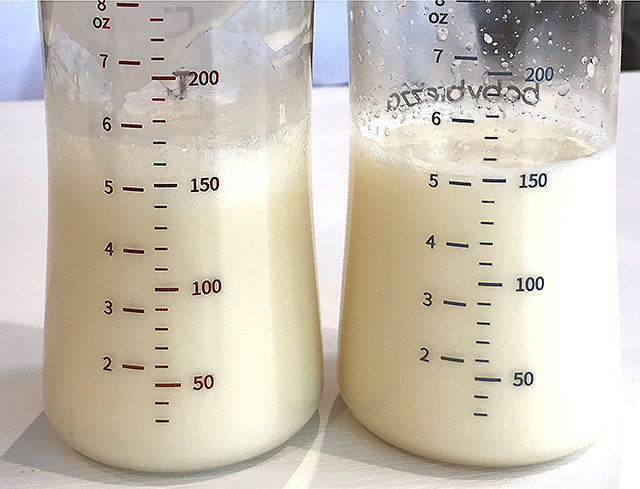 画像をみれば一目瞭然、左が手動でつくったミルクで、粗い泡やダマがみえる。