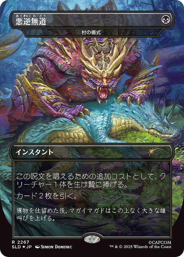 モンハンの世界がマジックの Secret Lair Superdrop として登場し、人気のモンスターであるリオレウス、ネルギガンテ、ジンオウガをはじめ、作品の魅力である「狩猟」の迫力をカード上で表現。
