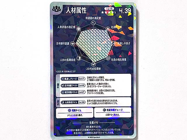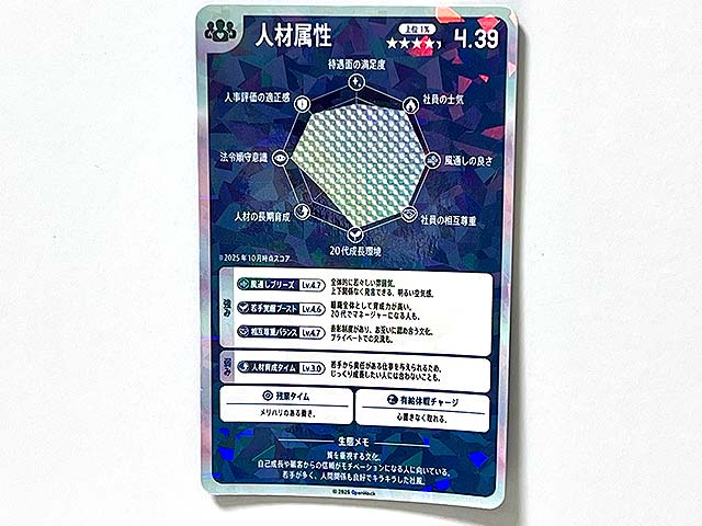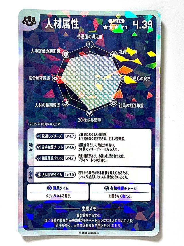 企業の「強み」や「弱み」が書かれたカード型の求人票を