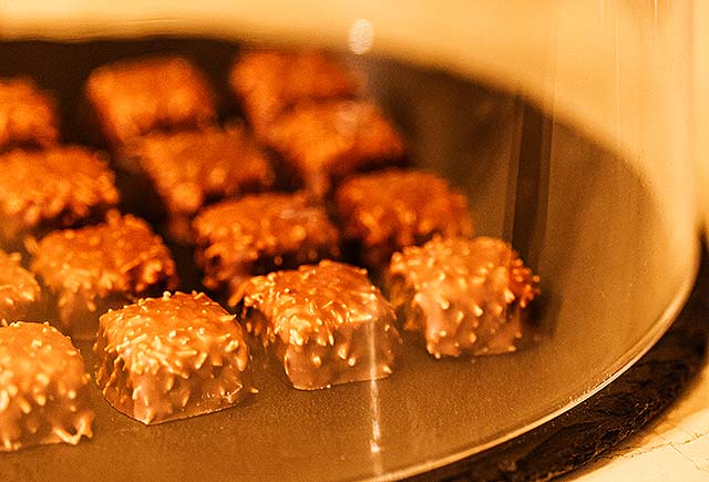 一粒一粒が完璧なバランスを保ちつつ、他のプラリネとも調和し、洗練されたテイスティング体験を生み出すよう設計しています。
