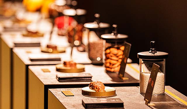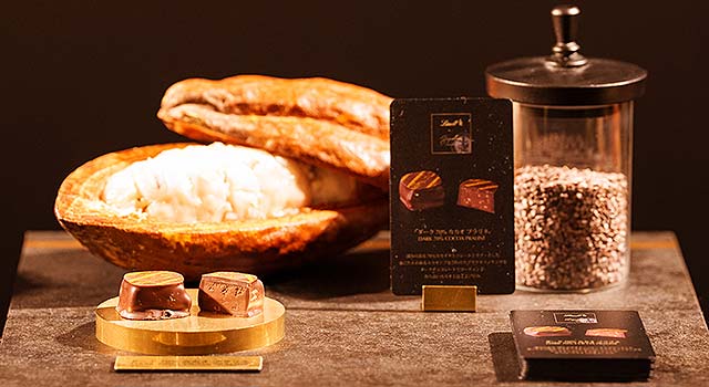 フランスの伝統と革新の最高のバランス、そして五感を揺さぶる感動を表現するために、カカオ豆や素材の厳選から仕上げまでを一貫監修。