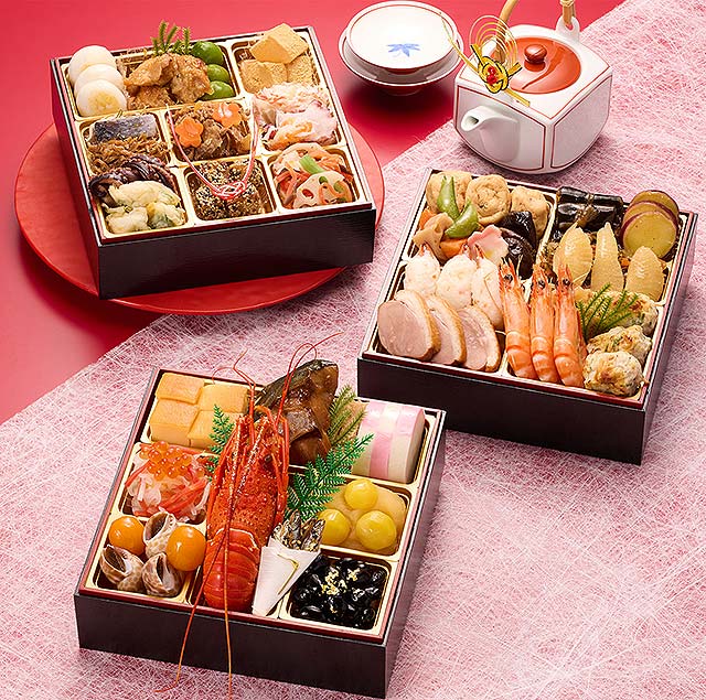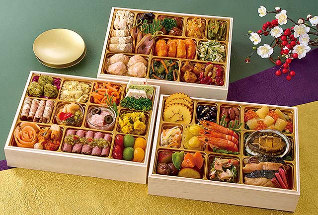 内容 : 和の重を丸の内「しち十二候」齋藤料理長、洋の重を恵比寿「ロジエ」金子シェフ、中華の重を神楽坂「ENGINE」松下シェフが監修。食材の魅力がたっぷり味わえるおせちです。