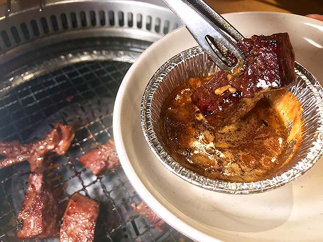 青唐辛子の辛味と風味を焼肉のたれにぎゅっと詰め込んだ力作で、ピリッとした辛さがお肉の旨味や脂の甘味を際立たせて GOOD!