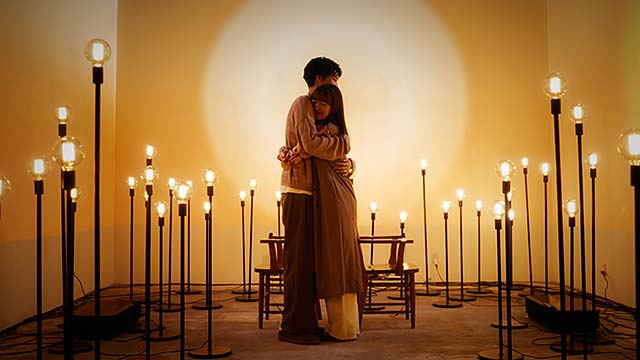 すると、心拍センサーが両者の鼓動を計測し、鼓動のリズムが光と音として空間全体に表現される。