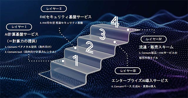 ひととは、アメリカ Cornami社製 省電力・暗号技術特化チップ搭載「次世代型高性能サーバー」の導入、もうひとつは、アデコ社のアノテーション運用の実績とノウハウを活用する連携だ。