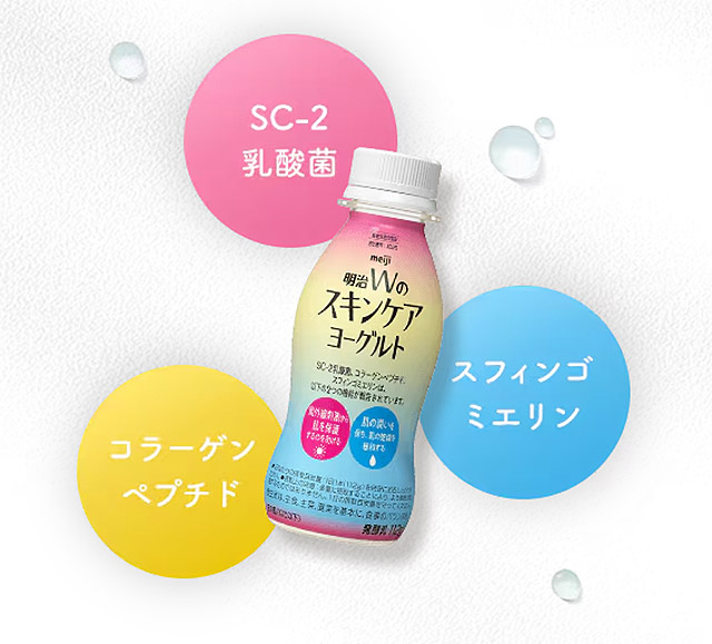 「明治Wのスキンケアヨーグルト」は、「紫外線刺激から肌を保護するのを助ける機能」「肌の潤いを保ち、肌の乾燥を緩和する機能」という2つの機能が報告されている機能性表示食品。