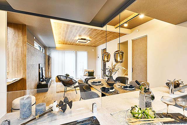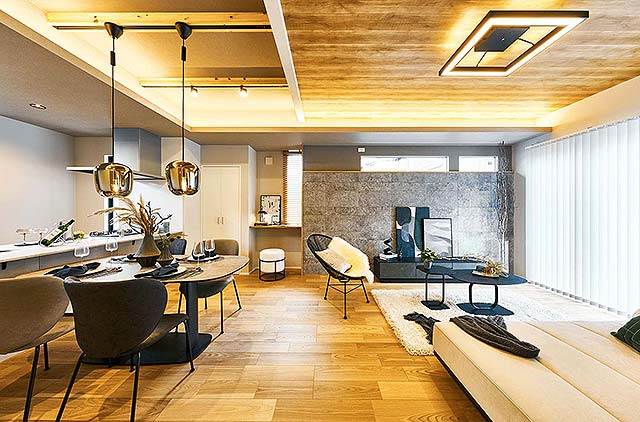 全邸が110m2を超える敷地面積を確保し、その魅力を享受できるよう広いリビングを採用し、随所に美しさと優雅さで包み込む良質な設えをほどこしている。