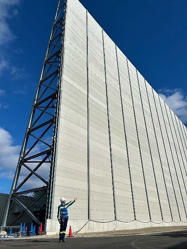 ガスタービンや蒸気タービンなどの主要な設備は、吸音パネルを設置したタービン建屋内に収め、敷地北側には高さ約40mの防音壁を設置し、近隣地域に対する防音対策を講じている。
