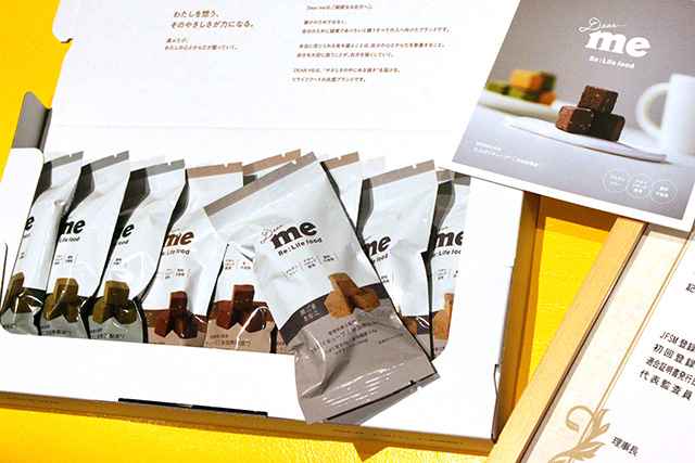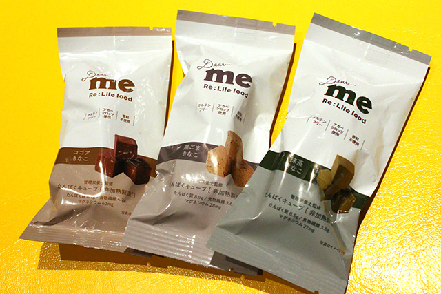 梅花堂紙業が手がける食品ブランド 「Dear me/Re:Life food」(ディアミー リライフフード)の第一弾は、「Dear me たんぱくキューブ 非加熱製造」(1/20~発売)