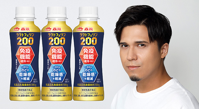 WEBムービーでは、『森永ラクトフェリン200ドリンクタイプ』になりきってしゃべっています(笑)。
