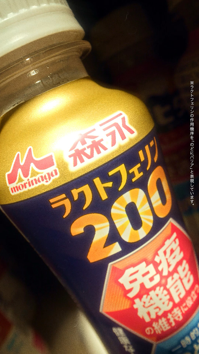 木村昴がここでいう「差し入れ」とは、乾燥が気になる季節にフィットする「免疫機能の維持」と「のどの乾燥感軽減」のWヘルスクレームをもつ、森永乳業「森永ラクトフェリン200 ドリンクタイプ」。