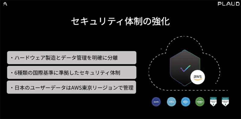またセキュリティ体制も強化。ハードウェア製造とデータ管理を明確に分離し、6種類の国際基準に準拠したセキュリティ体制に。