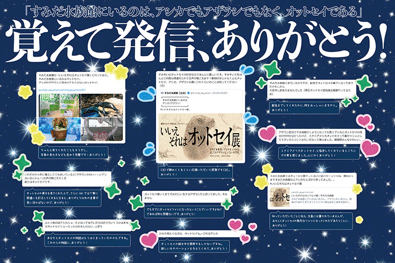 昨年開催したイベント「いいえそれはオットセイ展」で、「すみだ水族館に暮らしているのは、アシカでもアザラシでもなくオットセイである」という事実を覚えてくれて、さらにオットセイの魅力を発信してくれたみんなの SNS 投稿をパネルで紹介☆