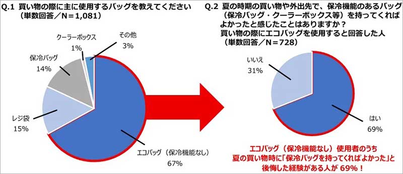 ◆エコバッグ使用者のうち、夏の買い物時に「保冷バッグを持ってくればよかった」と後悔した人が多数