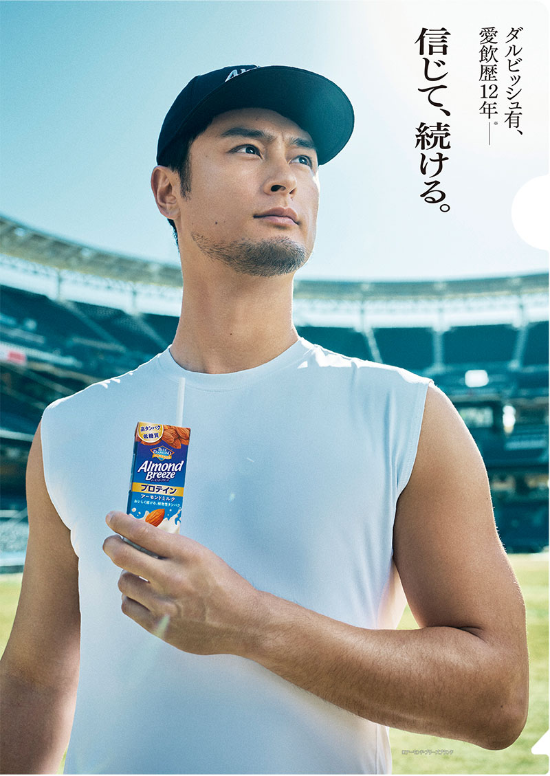 12年間にわたりカゴメ「アーモンド・ブリーズ」を飲み続けてきたダルビッシュ有。