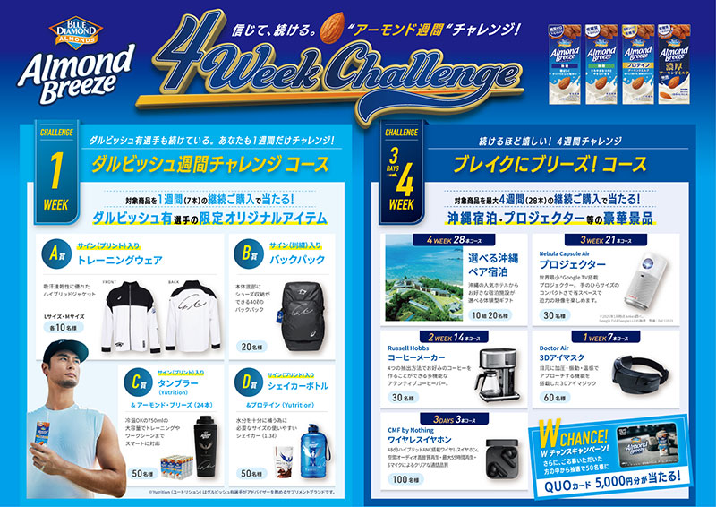 さらに、「アーモンド・ブリーズ」200mlを店頭で購入すると、ダルビッシュ有オリジナルグッズ(数量限定)がもらえるチャンス!